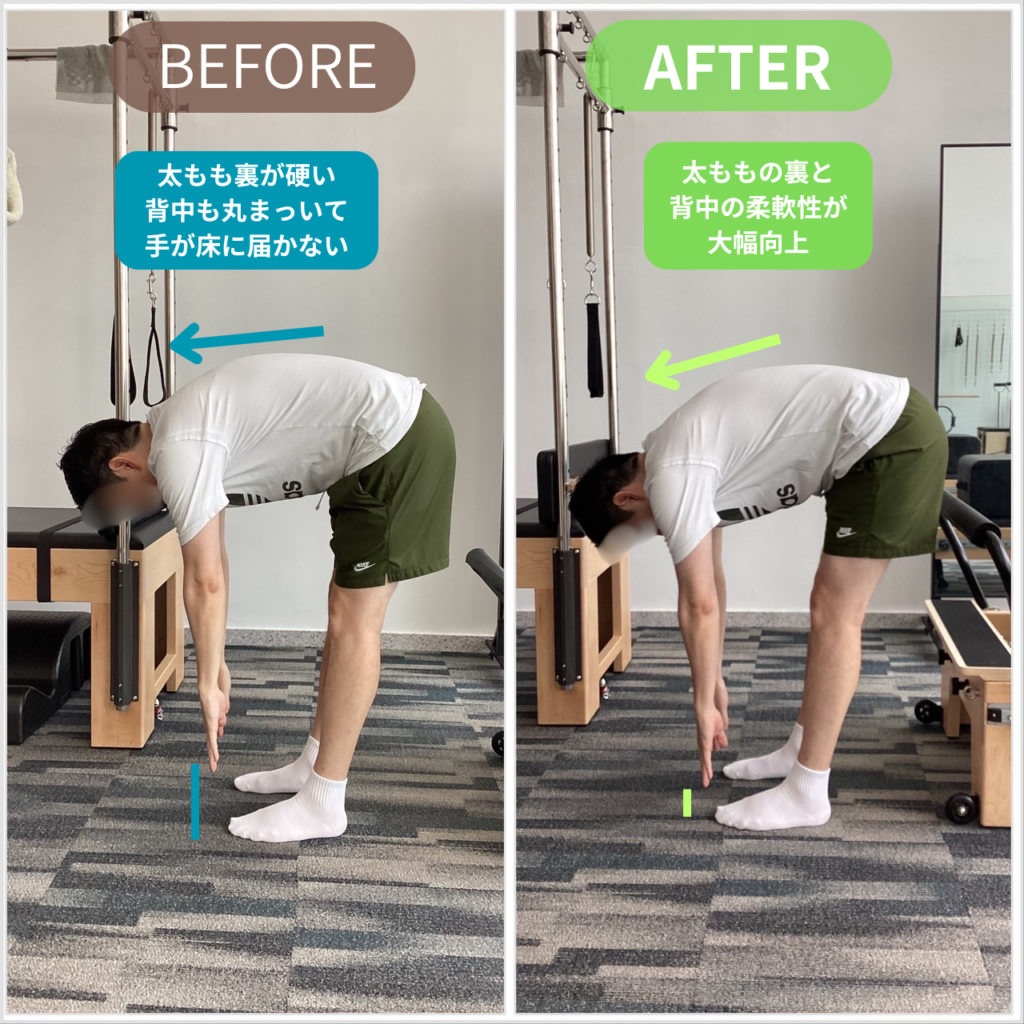 ・前屈の可動域が改善し、手が床に近づいた